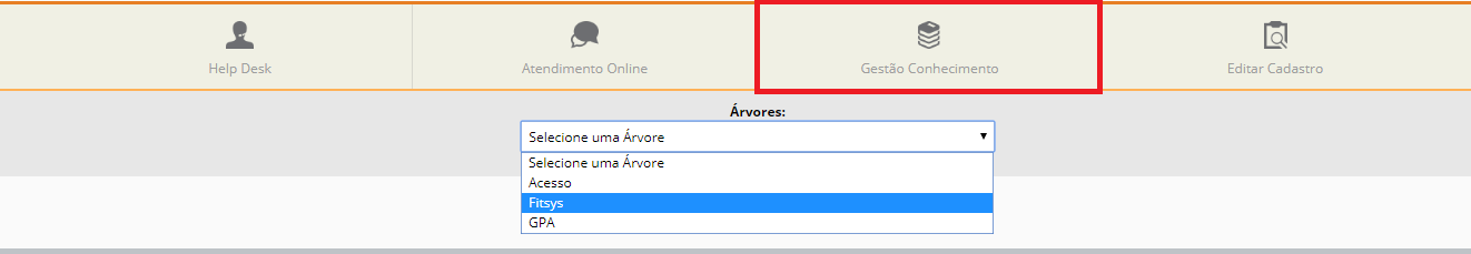 1. Na janela inicial da Gestão do conhecimento, selecione o software desejado, como no exemplo abaixo;