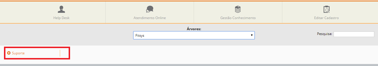 2. Selecione, no menu à esquerda, a opção Suporte, conforme a imagem abaixo;